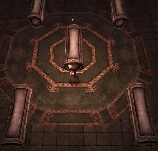 这里需要玩家拖动对应炉火颜色的台柱到红圈位置,拖完以后大门打开,门前的两口棺材瞬间破棺而出,然后双宿双飞。