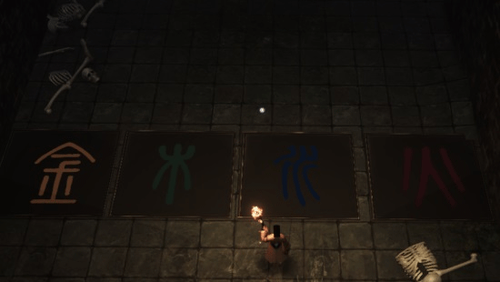 接下来来到右边的解密密室,这里的解密同样很简单,按出金木水火土的顺序就可以。