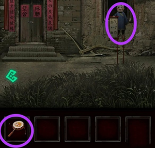 密码打开门,得到道具装在水井上。查看灯笼线索。粉色方框缸内有虫子。