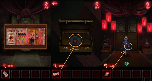 拼好图后得到【冥钞】,【冥钞】放进箱子里的【红包】,把【红包】拿给小孩。