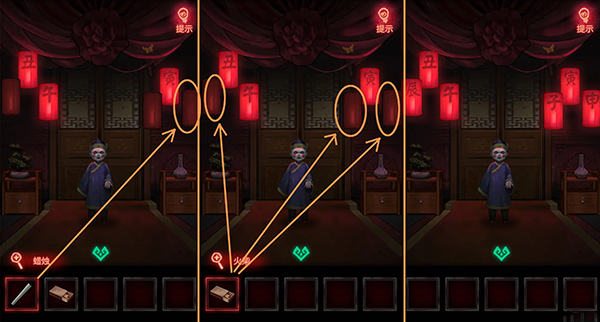 【蜡烛】放进灯笼,用【火柴】将灯笼都点燃。
