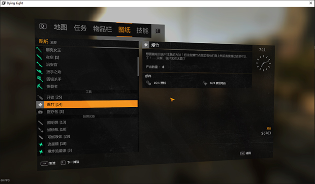 1、在进入游戏后打开背包,在图纸一栏中选择并点击“爆竹”一栏进行制作(按下Enter键);