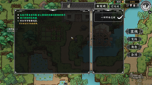 5、跟随指引来到左下角找到村长提交任务。