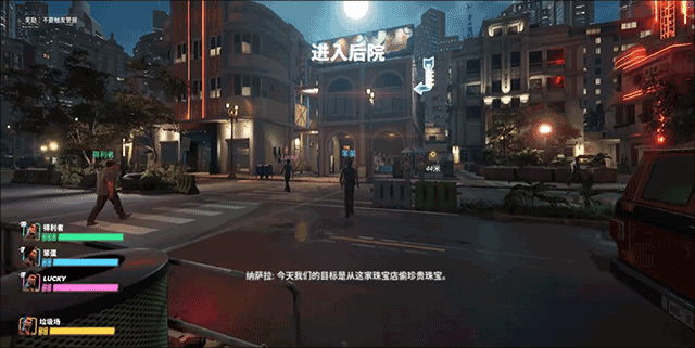 关于前者,Rogue要素的存在大大增强了游戏的刺激感与策略性,角色永久死亡的设定显然是鼓励玩家用潜行的方式来达成目的,但金库和保险箱里那些诱人的财物很难让人抵挡住诱惑,只能动用电锯电钻这种动静较大的玩意儿,然后迎接安保、特警以及其他帮派成员的轮番攻击。