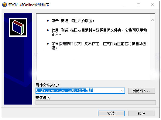 2、同意安装条款后选择游戏的安装目录,点击安装;