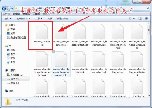 找到文件夹以后,将下载好的语音补丁文件复制粘贴到该文件夹中;
