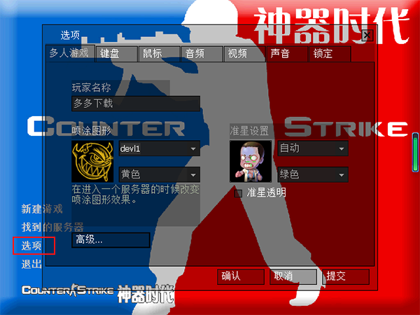 4、进入游戏后,我们可首点击选项,对游戏中的名称、准星等属性进行自定义修改