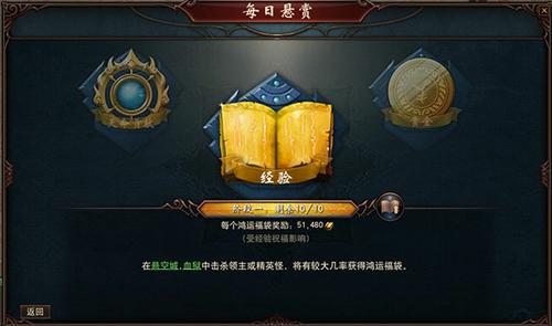 每日悬赏有3种奖励:赏金奖励,天命奖励,经验奖励。