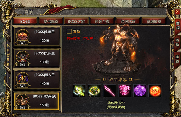 2、多倍爆率BOSS只有部分地图才有,这类BOSS伤害和血量都会比普通BOSS高上一个档次。爆率比普通BOSS高很多。通常会和普通BOSS刷在一起,战力不够会被多个BOSS围殴打出地图。根据自己的战力,对自己战力有自信的可以在多倍BOSS所在的地图挂机。