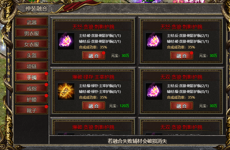 两件不同词缀相同转生的单属性词缀装备,可以融合成对应下一转的双属性词缀装备。