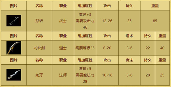 2、道士:龙纹剑 8-20攻 3-6道