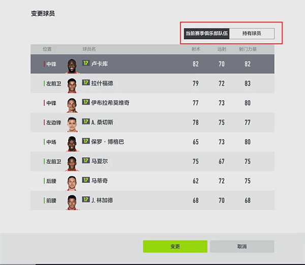 激活球队特色的材料,同时可以反复使用同一名符合条件的球员哦(如图中使用了两张“皮亚查”来激活球队特色)。