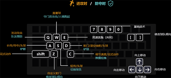 训练模式中分为【基础】、【传球】、【带球】、【防守】及【射门】五个训练模块。每个训练模块中有不同难度的专项训练。