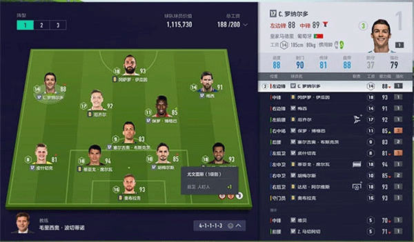 每名球员都拥有初始数值,包括进攻、防守、盘带、射门、速度等各30多个方面,通过比赛和训练可以逐步提升球员的数值属性。