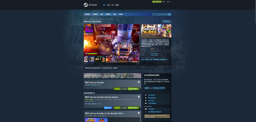 《百战天虫:大混战》Steam售价62元,豪华版95元,支持简体中文,现评价为特别好评,好评率超90%。
