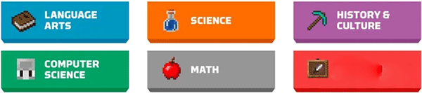 MC-EDU版里的课程主要都集中在国际版里,根据国际版网站的提示,课程分如下六类,总共的课程多大几百节课,这些STEAM方面的课程遵守美国教育标准。