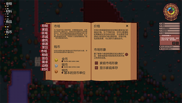 村民们将根据现有的供求情况更新他们的商品价格。为了平衡市场,你可以管理税收策略或从货仓供应资源,方法是授予资源或以较低的价格出售资源。所有价格,包括租赁费,均以铜币为基础货币。