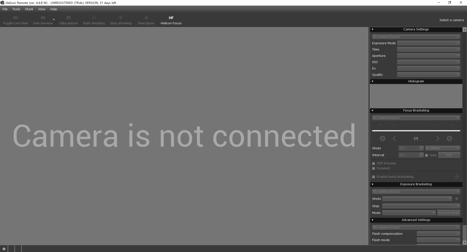 使用Helicon Remote,您可以更改大多数相机设置:光圈,快门速度,ISO,闪光模式,闪光补偿,白平衡,色温,图像格式,曝光补偿和驱动/拍摄模式。
