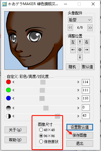 5、勾选“图像大小”,点击“保存图像”按钮即可将卡通头像以“BMP”或“PNG”格式进行输出
