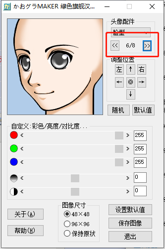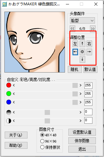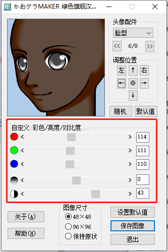 4、另外还可以对卡通头像的“色彩、亮度和对比度”进行调整