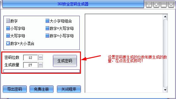 2、选择密码位数以及生成数量,点击生成密码即可。