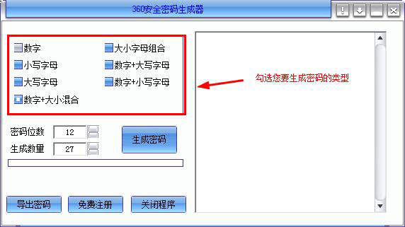 1、下载并运行软件,根据所需勾选需要生成密码的类型。