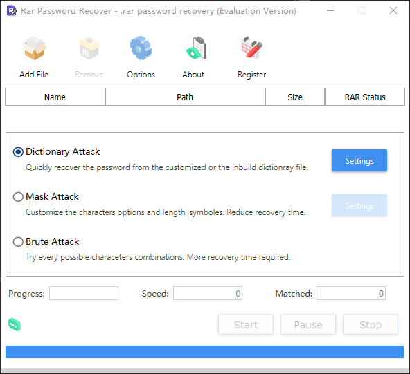 使用我们的内置密码词典,您可以立即删除RAR保护,此外,您还可以构建自己的字典,这将使恢复过程尽可能快。