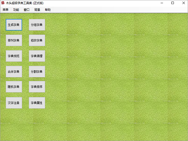 打开木头超级字典工具集,进入木头超级字典生成工具集主界面。主要功能在主界面左侧按扭式排列。可同时打开多个子窗口。下面对每一项功能分析说明。