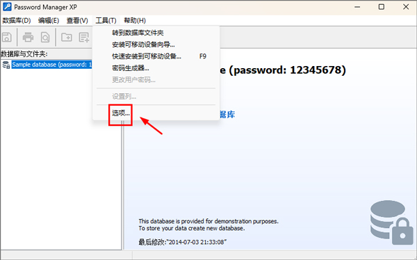 1、打开Password Manager,进入软件后点击上方工具,找到选项;