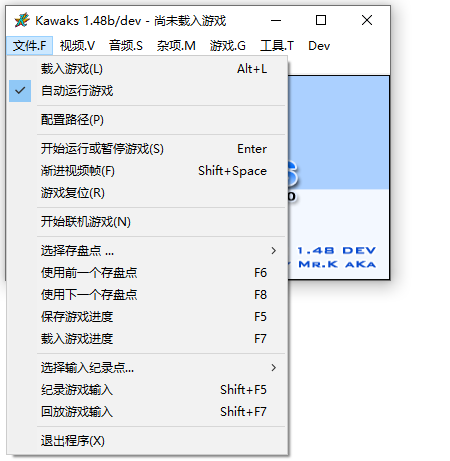1、所用的模拟器为WinKawaks1.48b/dev ,压缩包中共包含了三个版本: