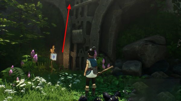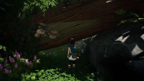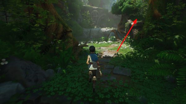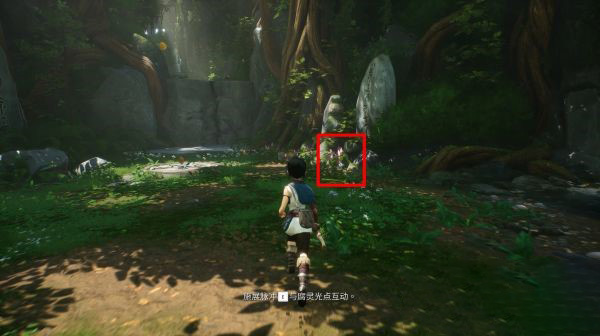 离开山洞后沿着道路继续前进,来到下图所示位置按下Q键即可蹲下爬过树干。