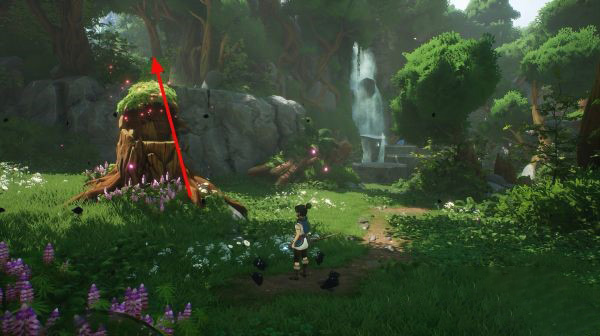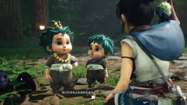 将腐化清理完毕后与两个小家伙交谈,他们表示可以带我们前往圣山神社,但我们必须先帮助他们把他们的哥哥太郎从森林深处救出。