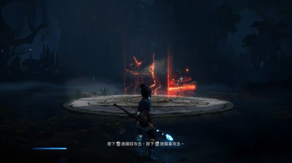 在前方大厅中我们见到了一个神秘灵魂,他似乎十分痛苦但又在劝说我们离开。随后与其召唤出的怪物战斗,使用轻攻击快速连击即可消灭敌人。