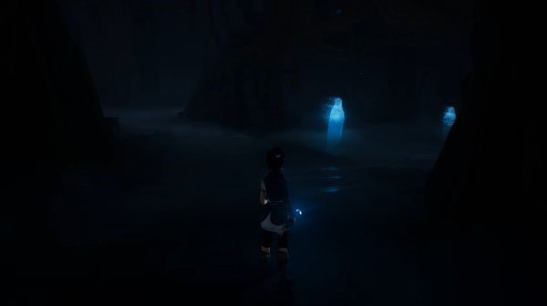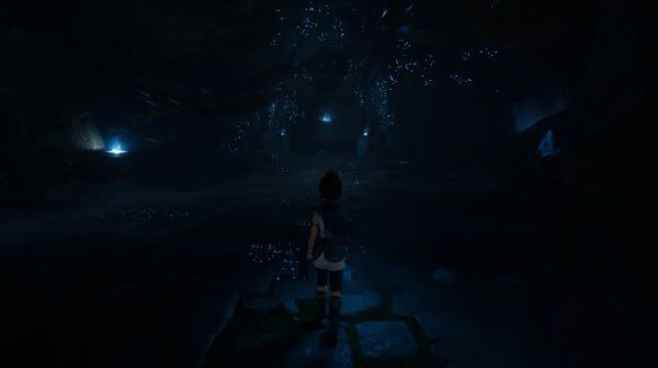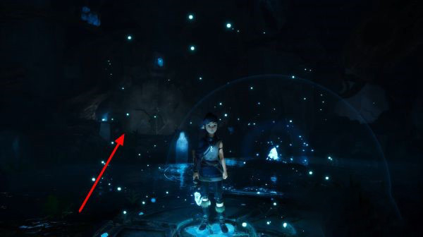 游戏开始我们从一个黑暗的山洞中醒来,准备前往圣山神社。按下E键释放脉冲点燃火焰,沿着光点继续前进。