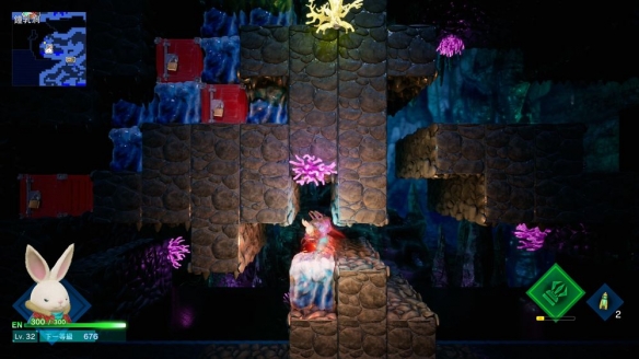 在遗迹内,为了阻挡玩家的前进,制作团队设置了很多敌人和障碍物,玩家需要破坏它们才能继续前进。途中还有各种机关,如陷阱、需要钥匙道具才能打开的门和隐藏区域等,丰富的元素让人不自觉地想要探索。探索过程中,Stamp 会以自言自语的形式提示玩家的攻略线索,此举对新手玩家非常友好。