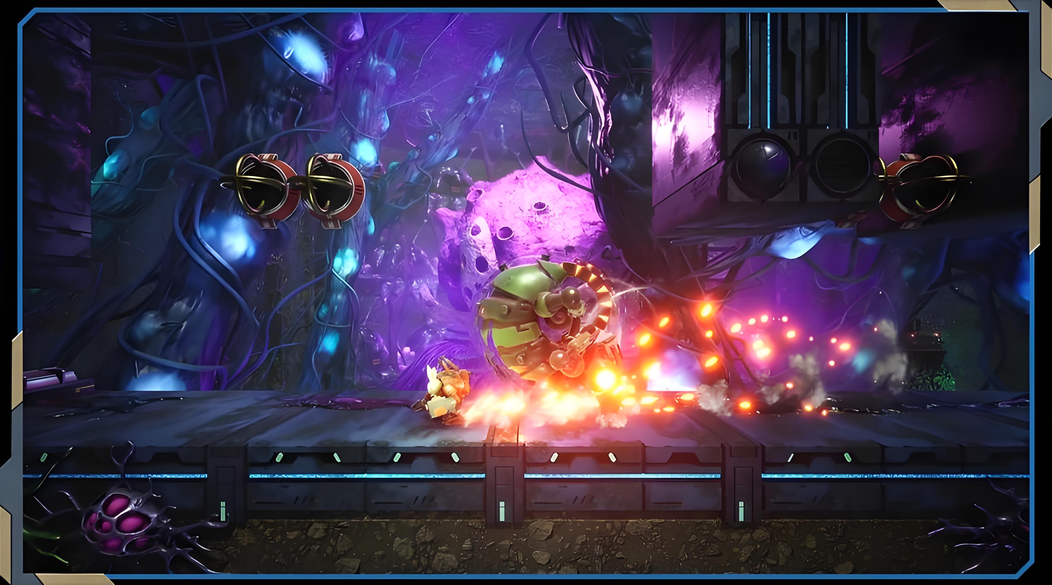 玩家将操控 Stamp 驾驶的「Junkster」,在充满惊险和谜团的巨大遗迹中进行探索。在这次试玩中,笔者挑战了名为「森林生物圆顶」的关卡。这是一个在遗迹的地下空间中,绿意盎然的草木繁茂的关卡,设计风格非常符合末日后的世界观。除此之外,还有海底和管理设施等与世界观紧密相连的多样化关卡。