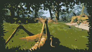 在游戏中,玩家可驯服并骑乘各种生物,如骑乘蚱蜢跳跃超长的距离,坐上豆娘来回翻飞,或者在蜘蛛背上快速旅行。然后收集或精炼资源,用树叶、树枝或岩石等不同等级的材料打造营地,以此让自己在这里生存下去。