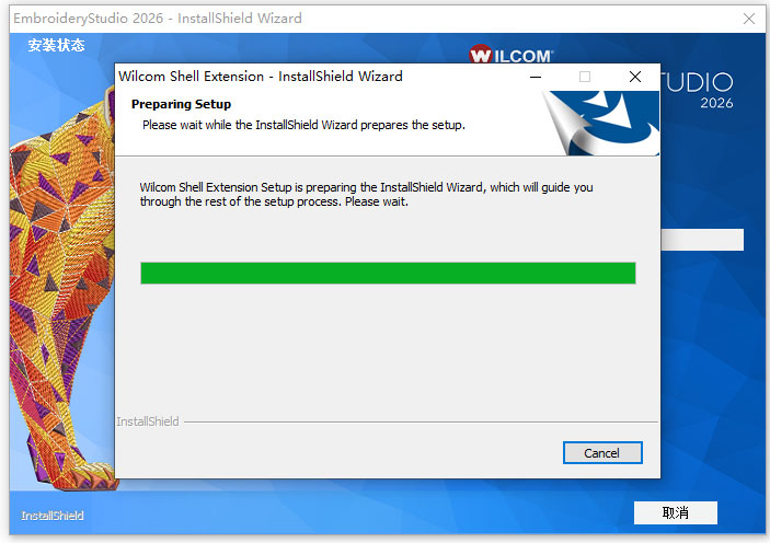 2、双击文件EmbroideryStudio2026_Setup.exe依提示安装,正在下载中,需要一定的时间;