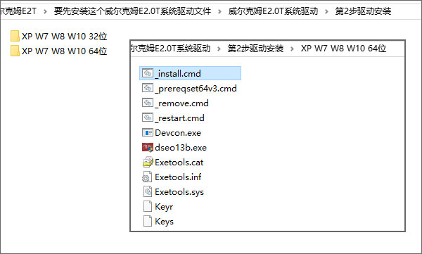 3、再打开【第2部驱动安装】,根据您的系统来选择32位的还是64位的文件夹,然后双击打开install文件;