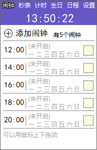 勇芳小闹钟是一款实用的,小巧的桌面闹钟软件,软件小巧玲珑,简单方便,更重要的是非常纯净,无任何广告,无任何流氓行为,完全免费,能够为用户提供定时闹钟功能,帮助广大用户更好的提醒时间。