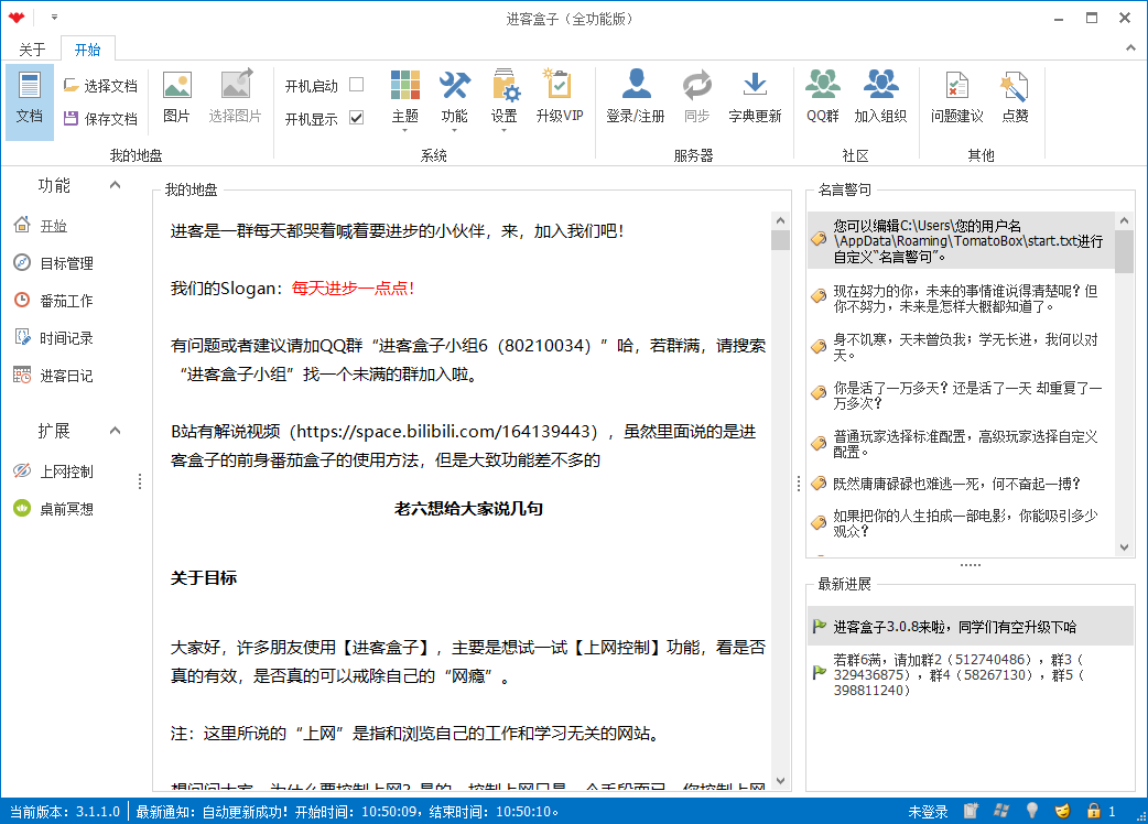进客盒子官方版是一款免费的自我管理软件,原名番茄盒子,功能很强大。它有目标管理、番茄工作、上网控制、时间记录和总结反思五大模块,通过PADA循环帮助用户提升效率。特别是番茄钟功能,可以灵活设置时间,还能自定义背景声音,桌面右下角也会显示进度条,挺方便的。统计功能也很牛,能按天、周、月、年甚至时段来统计工作时间。