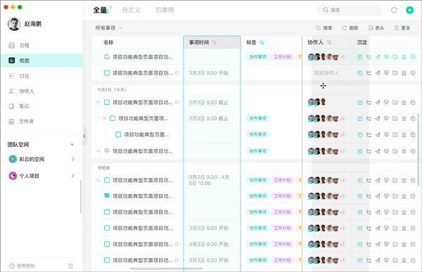 ●表格化管理:在全量列表中,可以像表格一样对事项进行操作管理: