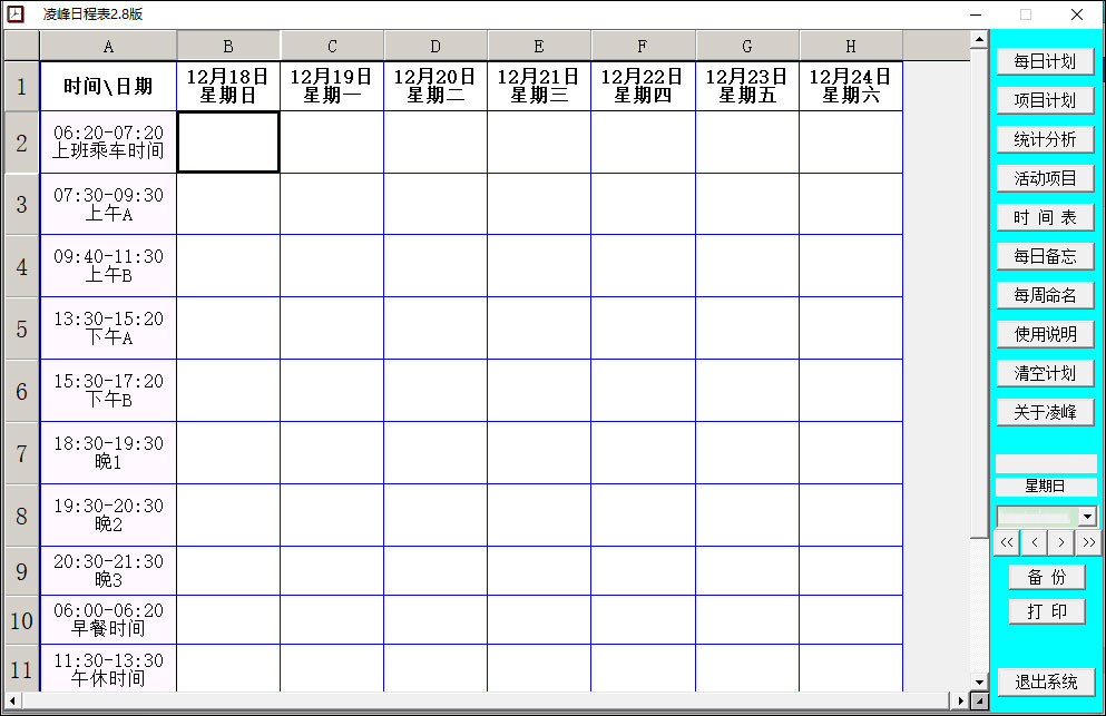 这款叫做“凌峰日程表官方版”的软件看起来挺实用的,主要是用来帮助用户更好地管理时间,制定计划和安排任务。它的功能很全面,包括时间划分、活动项目设定、每日和项目计划制定、查询打印以及统计分析等等。我觉得最方便的是它可以批量添加重复性的计划,比如每天或者每周固定的时间安排,这样就不用每次都手动输入了。