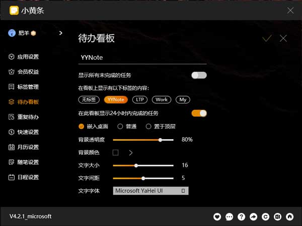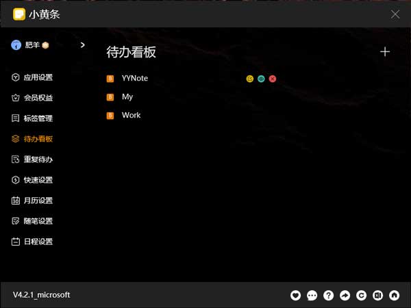 小黄条是一款很实用的待办事项管理工具,支持跨平台同步和桌面嵌入,功能强大但操作简单。它可以帮助用户高效管理任务、日程、备忘录等,并且可以在手机和电脑之间无缝同步,特别适合需要输出周报的办公族。软件界面极简透明,没有广告和推送干扰,注重隐私保护,完全绿色应用。它的最大亮点是支持将待办看板嵌入桌面,用户可以根据需求调整大小、位置甚至透明度,让任务管理更直观高效。此外,小黄条还支持倒数日提醒、标签分类、第三方日历同步等功能,满足多样化的使用场景。虽然目前同步存在延迟,但整体功能还是很强大的,尤其是对需要多设备协作的用户来说,非常值得尝试!