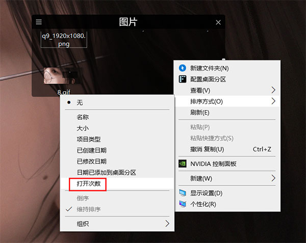 9、桌面上、分区内,所有文件可按打开次数排序;