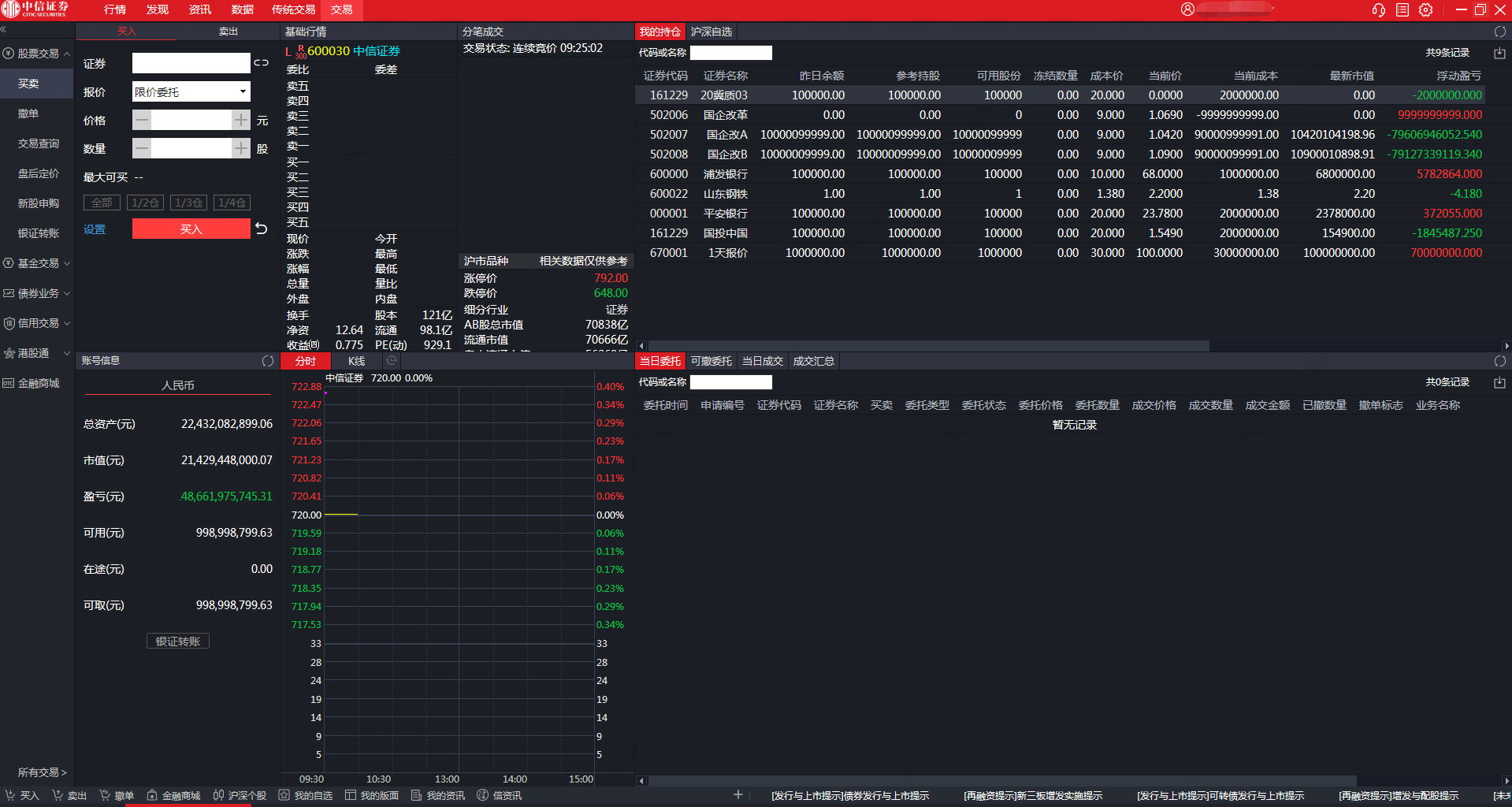 1、中信有“传统交易”与“交易”的两种不同的交易界面。