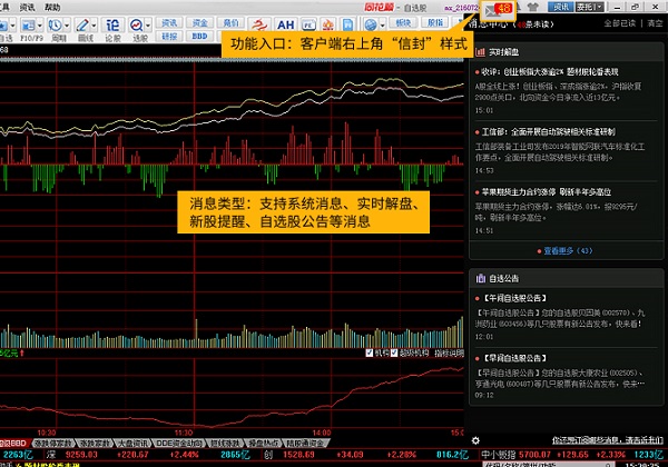 “同花顺”提供了大量的组合页面,将行情、资讯、图表、技术分析与财务数据有机组合,让您多角度、全方位地进行观察、分析,捕捉最佳交易时机。