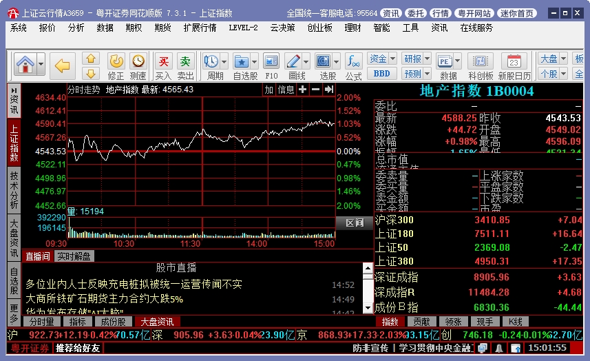 1、安装完成后,会自动进入粤开证券同花顺版软件的主界面,并弹出粤开证券最新公告 中心。