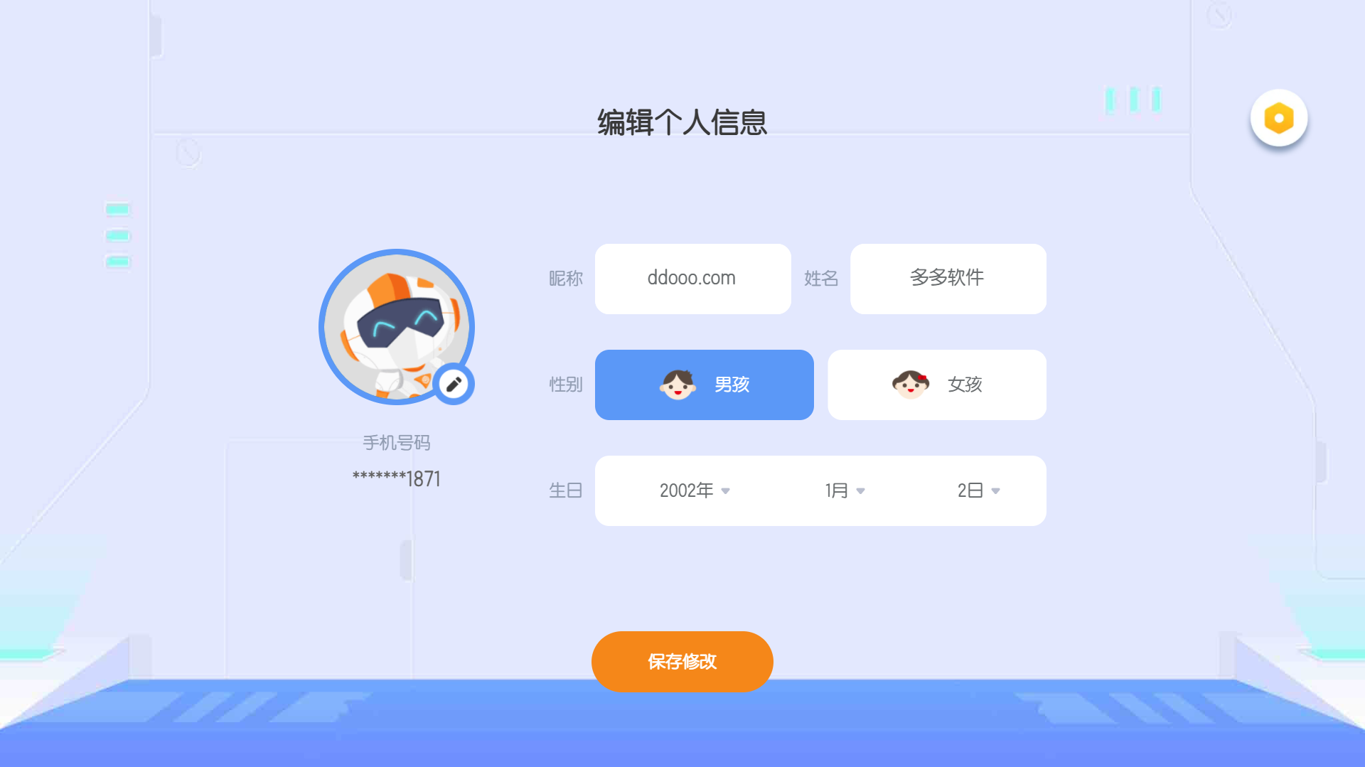2、接着我们依次编辑好昵称、姓名、性别和生日等个人信息,点击【保存修改】即可,