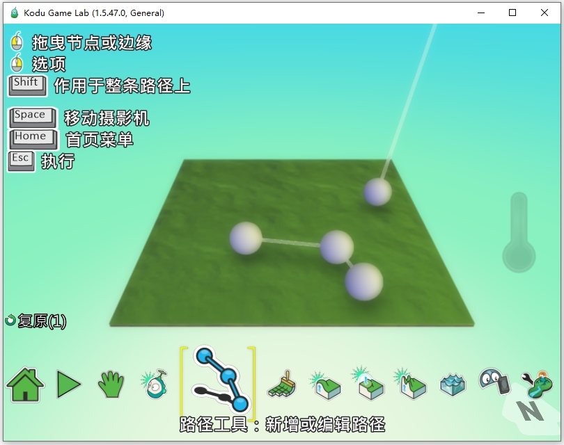 这5种工具的操作非常简单,通过不断地操作观察,很容易就能总结出它们的具体功能,同时在屏幕的左上角,还有详细的提示和说明,特别方便学生自学以及讨论工具使用方面的经验交流。